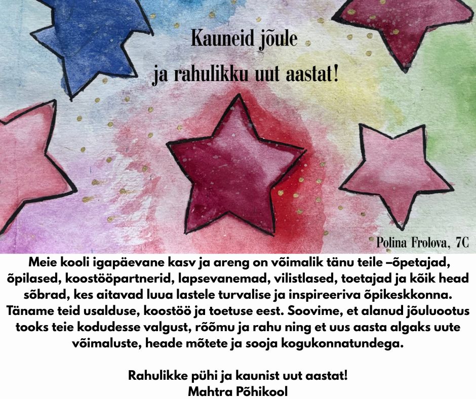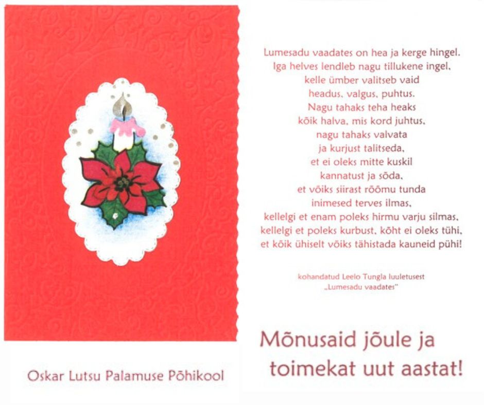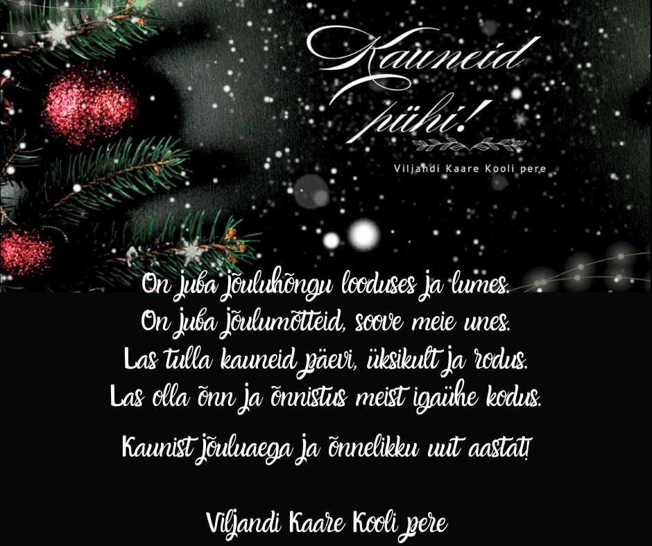 Aitäh teile kõigile, kes leidsid nii tihedas ajas hetki, et saata meile häid soove, rõõmsaid tervitusi ja kauneid kaarte. Iga sõna, iga mõte ja iga väike märkamisehetk jõudis meieni nagu omaette kingitus — selline, mis ei mahu paberisse ega ĂĽmbrikusse, vaid läheb otse sĂĽdamesse. Läheneva TORE 30 pidustuste valguses „SĂĽdamest sĂĽdamesse: juured minevikus, jõud tulevikus” (30.-31. jaanuaril PääskĂĽla Koolis) on see kui mõnus sĂĽdametest sĂĽdametesse liikumise treening – anname endast välja asju, mis tulevad sĂĽdamest ja võtame vastu ka otse sĂĽdamesse.Â